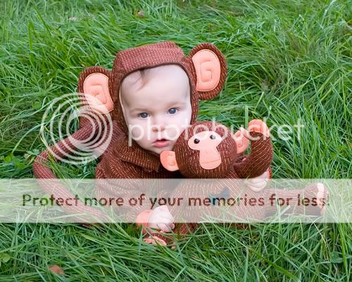 Since Benjamin turned 7 months old today I decided we would celebrate with a halloween shoot. Isn't he a cute monkey! I can't wait to dress Maria and Matthew up now too!!!